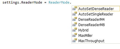 The second method is to use the Impinj Octane SDK. If programming in C#, use the enum ReaderMode in the Settings class as shown below.